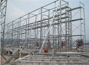 满堂脚手架:指室内天棚的安装和装饰及安装工作面等而搭设的一种棋盘井格式脚手架。-主要用于单层厂房、展览大厅、体育馆等层高、开间较大的建筑顶部的装饰施工。由立杆、横杆、斜撑、 剪刀撑等组成. 。