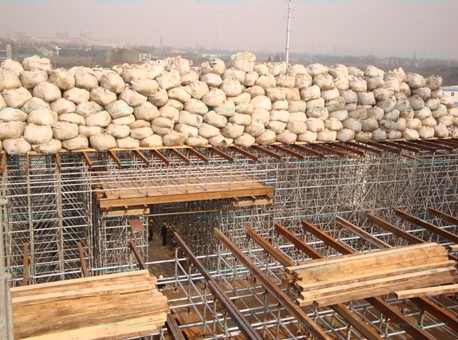 碗扣式钢管脚手架,又称碗扣型脚手架,是我国参考国外同类型脚手架接头和配件构造自行研制而成的一种脚手架。碗扣式钢管脚手架由钢管立管、横管、碗扣接头组成。其核心部件为碗扣接头,是由上、下碗扣、横杆接头和上碗扣限位销等组成。在立杆上焊接下碗扣和上碗扣的限位销,上、下碗扣和限位销的间距为600mm,将上碗扣套入立杆内。在横杆和斜杆上焊接接头。组装时,将上碗扣的缺口对准限位销后,即可将上碗扣拉起(沿立杆向向滑动),把横杆接头插入下碗扣圆槽内,随后将上碗扣沿限位销滑下,并顺时针旋转以扣紧横杆接头(用锤敲击几下即可达到扣紧要求),利用限位销固定上碗扣即成。